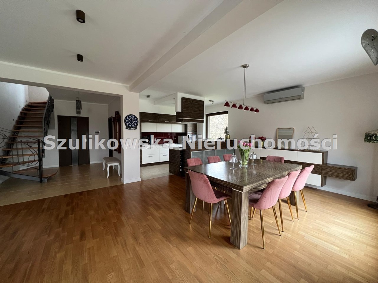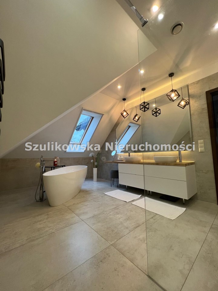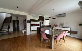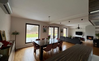 Dom z roku 2011, o powierzchni użytkowej 220 mkw., posadowiony jest na działce 0,31 ha. Zarówno do budowy jak i wnętrza domu zastosowano najwyższej jakości materiały, ściany nośne bloczek silka (gr. 24 cm), ocieplony styropianem (gr. 15 cm), kryty dachówką ceramiczną. Wykonane odpowiednie rozwiązania technologiczne odpowiedzialne są za jego energooszczędność. Charakteryzuje go funkcjonalny rozkład wnętrz, który zapewnia wygodną komunikację w domu.