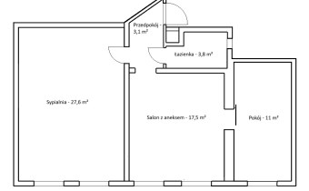 Salon z aneksem kuchennym, dwie sypialnie, łazienka z prysznicem oraz przedpokój. Kuchnia przygotowana pod montaż mebli według własnej aranżacji.